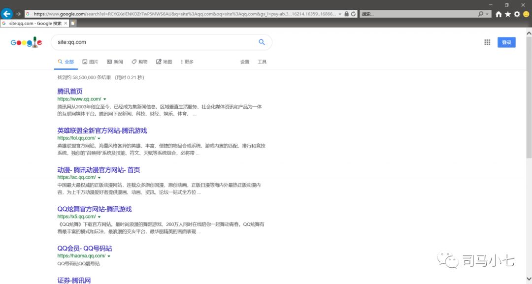 第2步:搜索 site:网址,该网址即是你要获取流量来路的网址,我们在此以QQ的网站为例,如图所示: