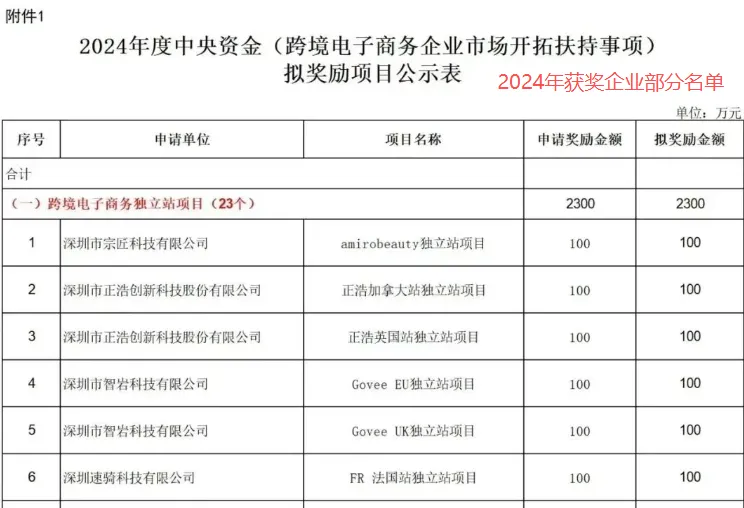 近日,深圳市商务局在官网发布“关于2025年度中央资金(跨境电子商务企业市场开拓扶持事项)独立站项目拟奖励项目公示的通知”,通知中不仅公布了获得专项奖励的企业名单,同时也披露了不予奖励的企业名单。