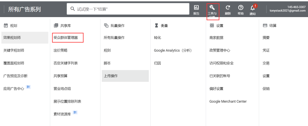 首先,在“工具与设置”中点击“受众群体管理器”,可进行设置。