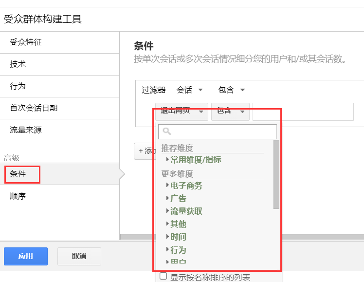 (3) 访问过某网页但未访问过另一网页的访问者:比如可设置访问了产品页但是没去过公司介绍页面的用户