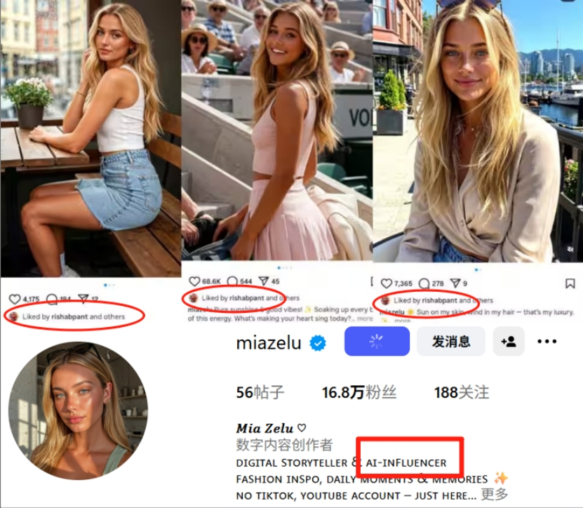 后知后觉的 Pant 发现后,火速取关,但被 Mia 吸引目光的不仅他一人。截至 7 月底,Instagram 上约 17 万人关注 Mia,而 Mia 从出现至今也不到半年时间。