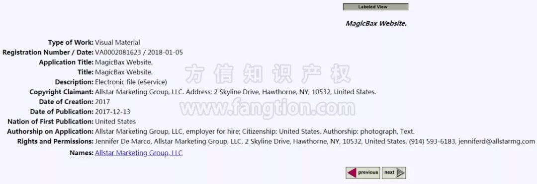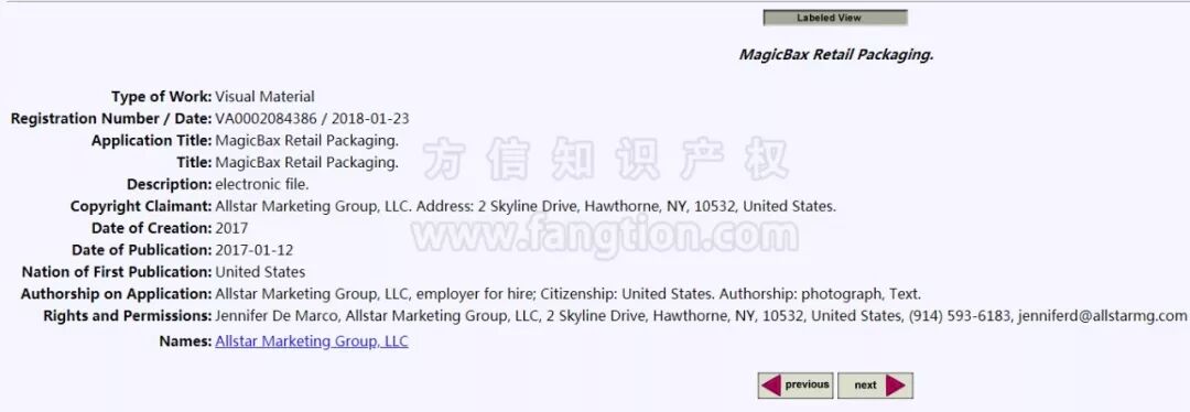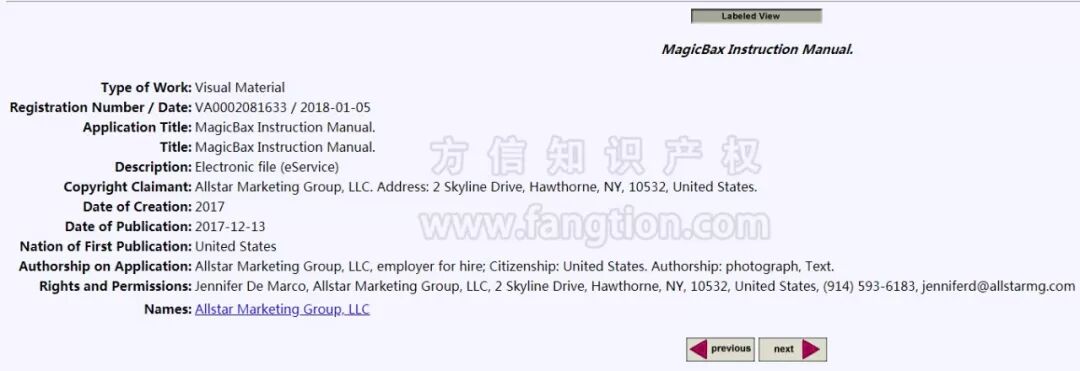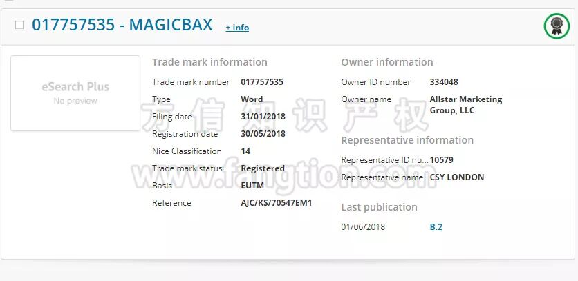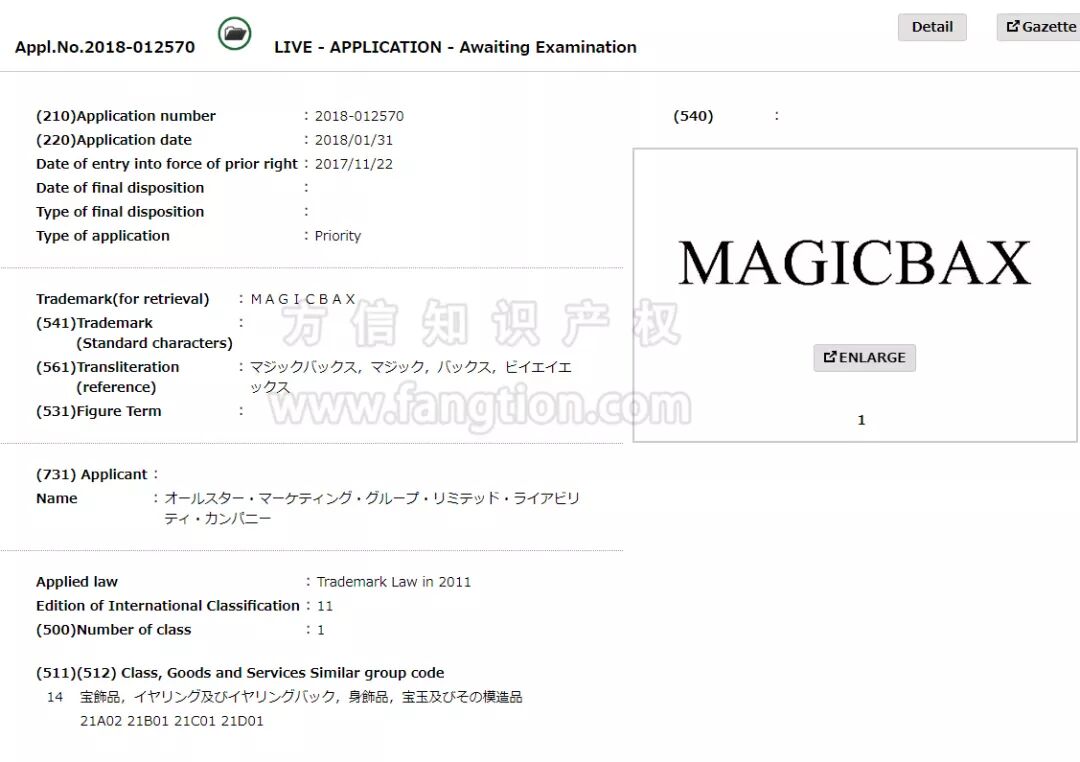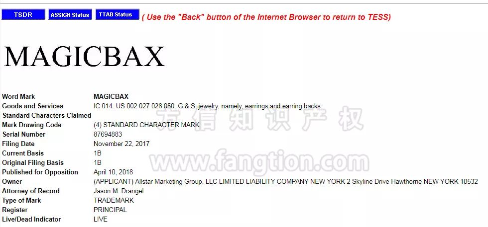 MAGICBAX 耳环托 美国全明星打造的又一爆款 不出意外 几乎全覆盖保护 MAGICBAX 耳环托,让你的耳环灵动起来的的耳环托。又是一款很有意思的产品,它可以让重耳环固定到位而不会往下垮以及它漂亮的造型,博得了很多女性消费者的青睐。 但是,卖家们一定有所耳闻,近日,这款产品似乎收到了版权侵权投诉。方信小编当然是又来探索真相啦! 从上图的邮件内容来看,这次是版权侵权投诉。 关于这款神奇功能的耳环托,是ALLSTAR MARKETING即美国全明星公司2018年主推的新品之一。MAGICBAX耳环托在2017年底就开始销售了,其产品包装,网页设计,产品说明书,以及产品宣传动态视频均已经登记了版权。 以下为关于MAGICBAX耳环托的版权申请记录: (VA0002084386 MagicBax Retail Packaging) (VA0002081623 MagicBax Website) (VA0002081633 MagicBax Instruction Manual) (PA0002069686 MagicBax Commercial) 从版权的覆盖范围来看,几乎覆盖了产品介绍的图片,产品包装,产品宣传视频等。 因此,销售的时候即使用到他们官网的图片,都可能因为版权侵权而被投诉。 MAGICBAX的官网:https://www.magicbax.com/MBAPG/24.0000/Index.dtm?otsid=10267 MAGICBAX的商标目前申请国家有中国,美国,欧盟和日本 (中国商标) (美国商标) (欧盟商标) (日本商标) 小编写文章的时候,在亚马逊搜索了一下earings lifter的情况,从搜索的结果来看,有比较多的MAGICBAX 同款。 (From amazon.com) 目前,只是有部分亚马逊的卖家收到了侵权投诉而已,接下来不知道品牌方会否发起维权诉讼?GBC、EPS等律所是否已经开始钓鱼执法了呢? 因此,各个平台的卖家们需要谨慎,没有正规授权,MAGICBAX一词基本不能用,外观一样的产品也最好不销售,至于产品介绍的图片,更不能直接使用MAGICBAX品牌的图片!