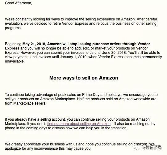 什么是Vendor Express(VE账号)? Vendor Express就类似于Seller Central和Vendor Central之间的“敲门砖”。它的功能非常接近Vendor Central。 Vendor Express让卖家免受邀就能批发销售产品给亚马逊,Vendor Express每个人都可以注册并使用。但它又类似VendorCentral,你没办法完全控制产品价格。 其次,Vendor Express用户也有资格直接用亚马逊FBA发货,并让他们可以选择直接发货给买家,不必从亚马逊仓库发货,那些使用Vendor Central的卖家则没有这样的选择。 为什么那么多痛恨又磕破头都想成为VE呢 加入该计划无须任何费用 • 物流所需费用包含从亚马逊或您的仓库直接运送给亚马逊顾客 • 存储产品和订单处理• 直接派送(dropship)选项,以便您通过预付运费直接把产品运送给亚马逊顾客 • 使用马逊高级算法自动定价产品 • 包括亚马逊产品目录和搜索 • 亚马逊Prime会员免费两天送货 • 订单超过$35的顾客免费送货 • 24小时顾客服务和顾客退货 • 亚马逊顾客使用移动设备(Kindle,智能手机,平板电脑)访问产品的全天候服务以及其他亚马逊营销服务计划 • 能够使用亚马逊AMS。这样卖家可以获取到更好的广告和“Sponsored Product”页面,增加曝光率。 最后一个: 亚马逊纵容VE账号 恶意跟卖,恶意破坏卖家listing,被破坏卖家投诉 亚马逊不理睬等等,是某些VE账号的人乐意看到的一点,这也是非常非常多人包括我自己很痛恨的一点 回到文章标题: 3月12日亚马逊表示,它将关闭Vendor Express项目。该公司通过电子邮件告知卖家该项目将于5月21日停止接收订单,并将于2019年1月1日起“永久停用”。 以下是亚马逊发给卖家的电子邮件: 电子邮件里表示:“我们一直试图改善亚马逊的销售体验。经过认真评估后,我们决定关闭Vendor Express,并将业务重点放在其他销售计划上。” 亚马逊也已证实将关闭Vendor Express项目,并表示参与该项目的供应商可以在亚马逊上以其他方式销售产品。 亚马逊并没有说明为什么要关闭Vendor Express项目。但据知情卖家透露,该项目早期充斥着假货,并且很难招募到高品质卖家。虽然Vendor Express在下订单之前要求提供样品和某些注册表格,但这一过程并不足以确保产品的真实性。 在电子邮件中,亚马逊鼓励供应商在平台上自己销售产品,并提到它的物流和运输系统。亚马逊平台近年来发展迅速,目前第三方卖家销售的产品数量超过整体平台的一半以上。 来看看被VE跟卖的卖家朋友们(图片来自网上) 不止这些,平时有很多朋友来找我说,Andy 我被VE跟卖了,我有品牌备案,怎么办,说实话,有品牌 跟亚马逊投诉 亚马逊受理很慢,多个账号做testbuy都不一定有用,被VE跟卖了就欲哭无泪呀。 有些朋友编辑权被抢了,拿UPC码找客服找回编辑权,然后呢,VE继续跟卖呢,只要他们认定了要跟卖搞你的话,基本这listing是废了的 大量注册虚假VE 被利用做大量免费CPC广告 VE乱象结束 皆大欢喜 现在亚马逊开始禁掉这VE账号后 对于我们非VE卖家来说,算是一条喜讯吧,哈哈 要踏踏实实做亚马逊,品牌化必不可少,早做品牌注册,防被跟卖。