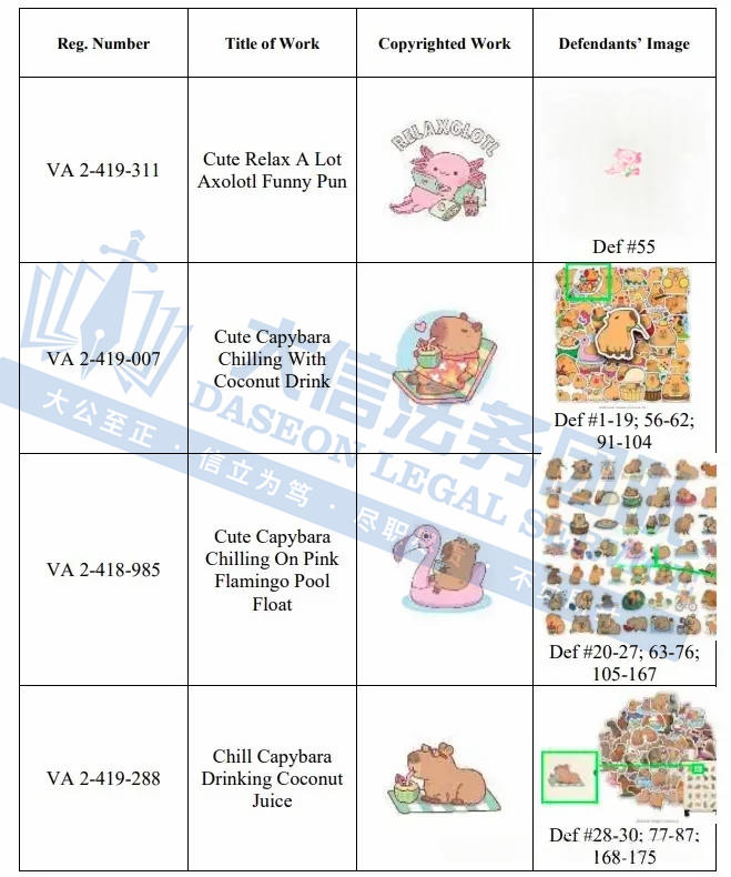 此案为版权维权,涉及3张版权图,以下是涉及版权的具体信息,除此之外,官网上的其他作品未经授权不得擅自使用,侵权风险极高,跨境卖家尽快检索下架,避免TRO侵权风险!