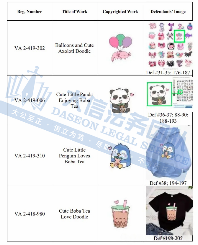 此案为版权维权,目前已冻结了286家店铺,涉及数十张动物可爱版权图,以下是涉及版权的具体信息,除此之外,官网上的其他作品未经授权不得擅自使用,侵权风险极高,跨境卖家尽快检索下架,避免TRO侵权风险!