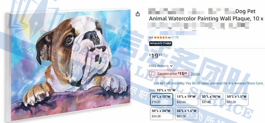 此案为版权维权,涉及3张版权图,涉及英国斗牛犬、小猪、拳师犬等,以下是涉及版权的具体信息,除此之外,官网上的其他作品未经授权不得擅自使用,侵权风险极高,跨境卖家尽快检索下架,避免TRO侵权风险!