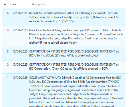原告是全球知名的制造企业,业务覆盖书写工具、打火机及剃须产品三大领域,BIC USA Inc.是BIC Corporation在美国的子公司,1999年成立于康涅狄格州谢尔顿,主要负责在美国制造和销售BIC产品。以安全耐用、设计多样著,具备防爆阻燃、点火稳定、续航持久等特点,还有丰富款式与联名款供用户选择。