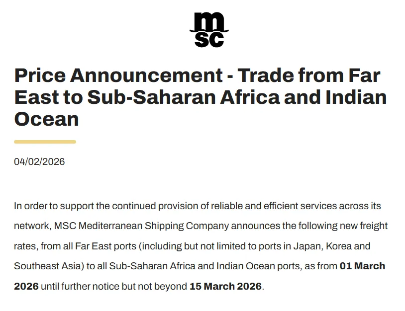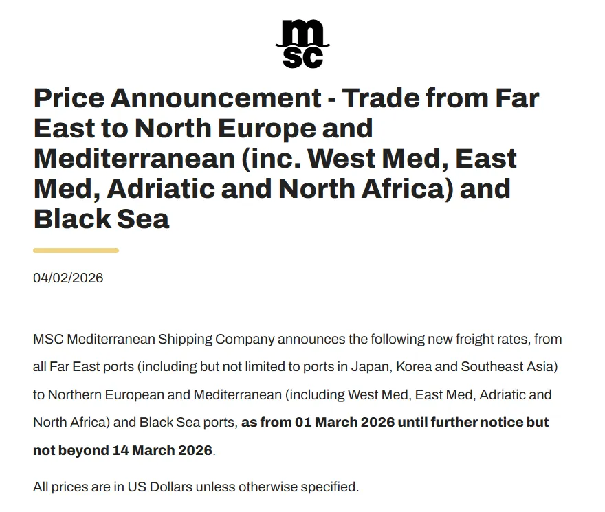 近日,地中海航运、达飞及赫伯罗特为首的头部船司近期接连发布公告,宣布调升自3月1日起的多条航线综合费率(FAK)及附加费。