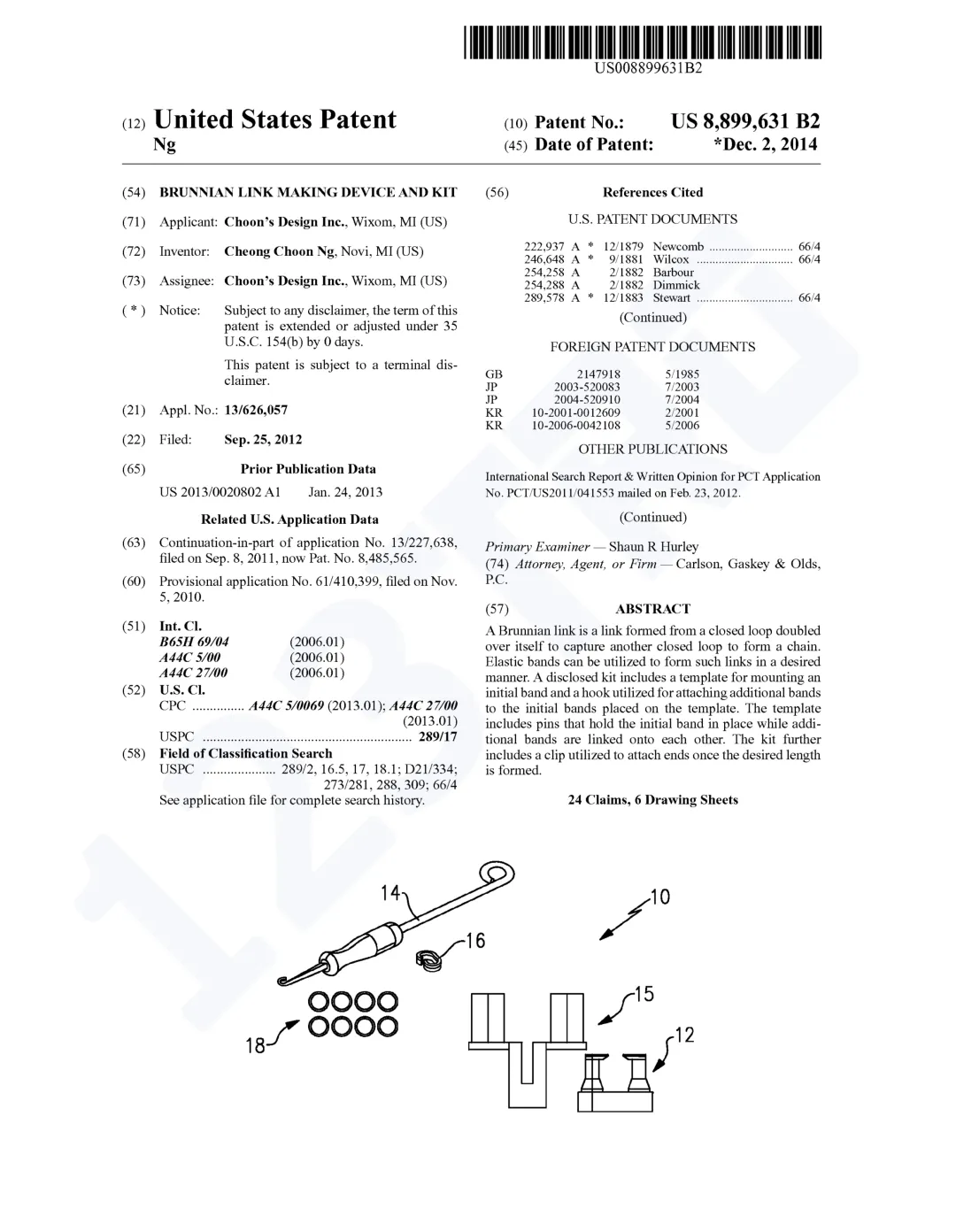 专利二:US8899631B2(2014年12月2日授权),其专利保护范围: