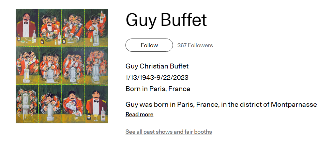 Guy Buffet(1943–2023)是一位法国画家,长期旅居美国夏威夷,其作品以南太平洋风景、餐厅场景、城市生活与岛屿文化为主题。他的画风幽默而充满童趣,善用将日常景象转化为富有艺术感的画作。