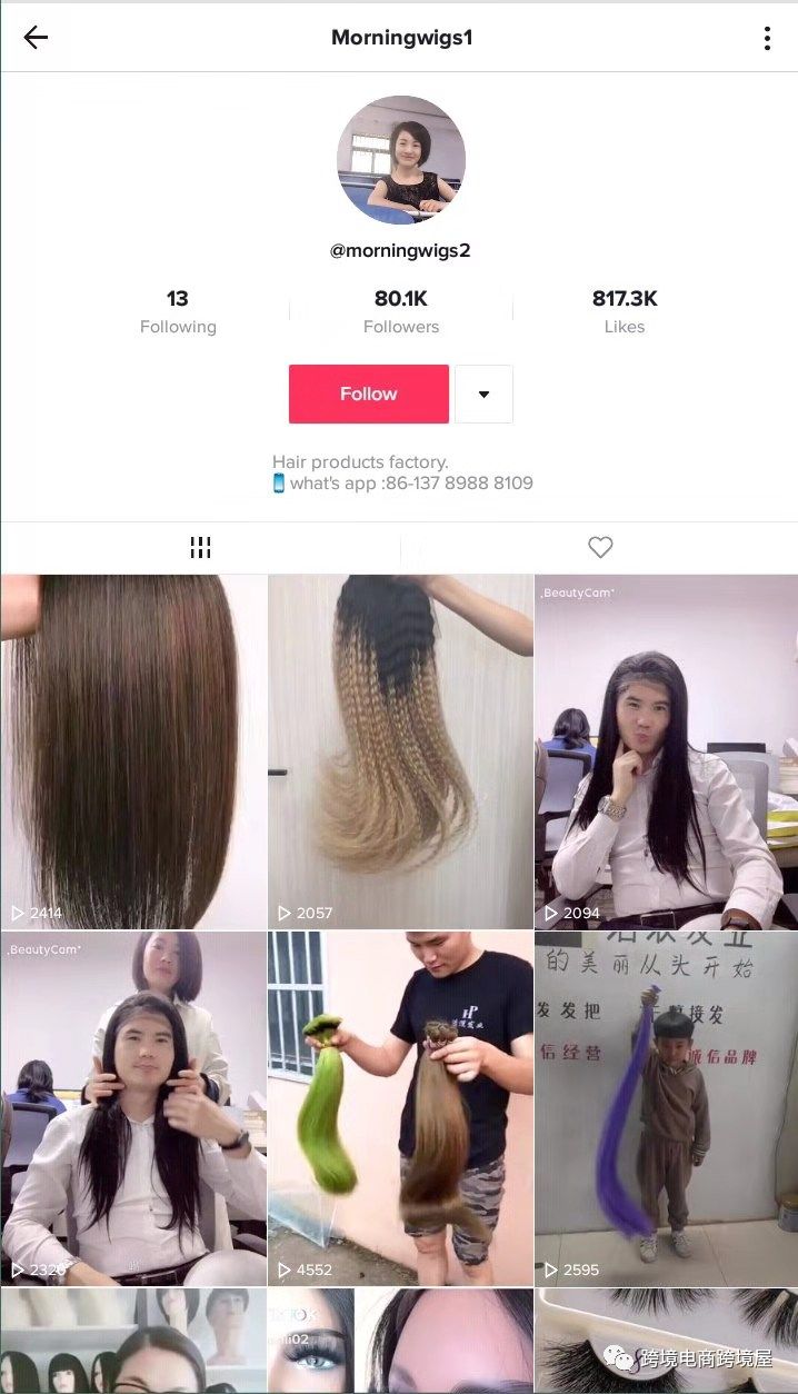 上面有她的联系方式和店铺链接。之前就有朋友利用视频上热门然后通过Ins店铺爆单的,虽然没有平台爆单那么夸张,但毕竟是免费流量,而且视频还是搬运来的,基本上不用花费多少时间(直接搬运会限流,需要二次创作,文末有知识星球,加入可随时掌握最新TikTok运营技术与资讯!)