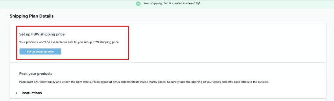 将包裹按照“配送计划详情”页的仓库地址寄送到指定的仓库即可完成商品配送。同样是在“配送计划详情”页面,你可以在这一页给你的FBW海外仓产品设置海外仓价格。