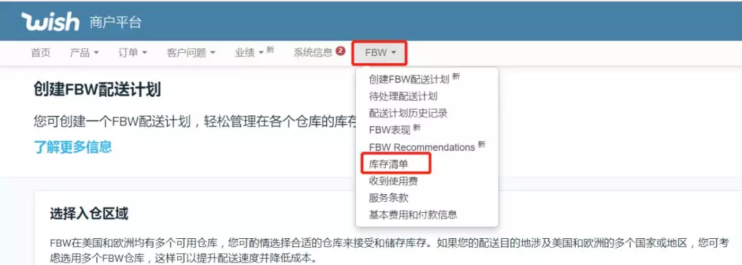 当然,你也可以在“FBW”页面中的“库存清单”中找到相应产品并设置FBW海外仓运费。