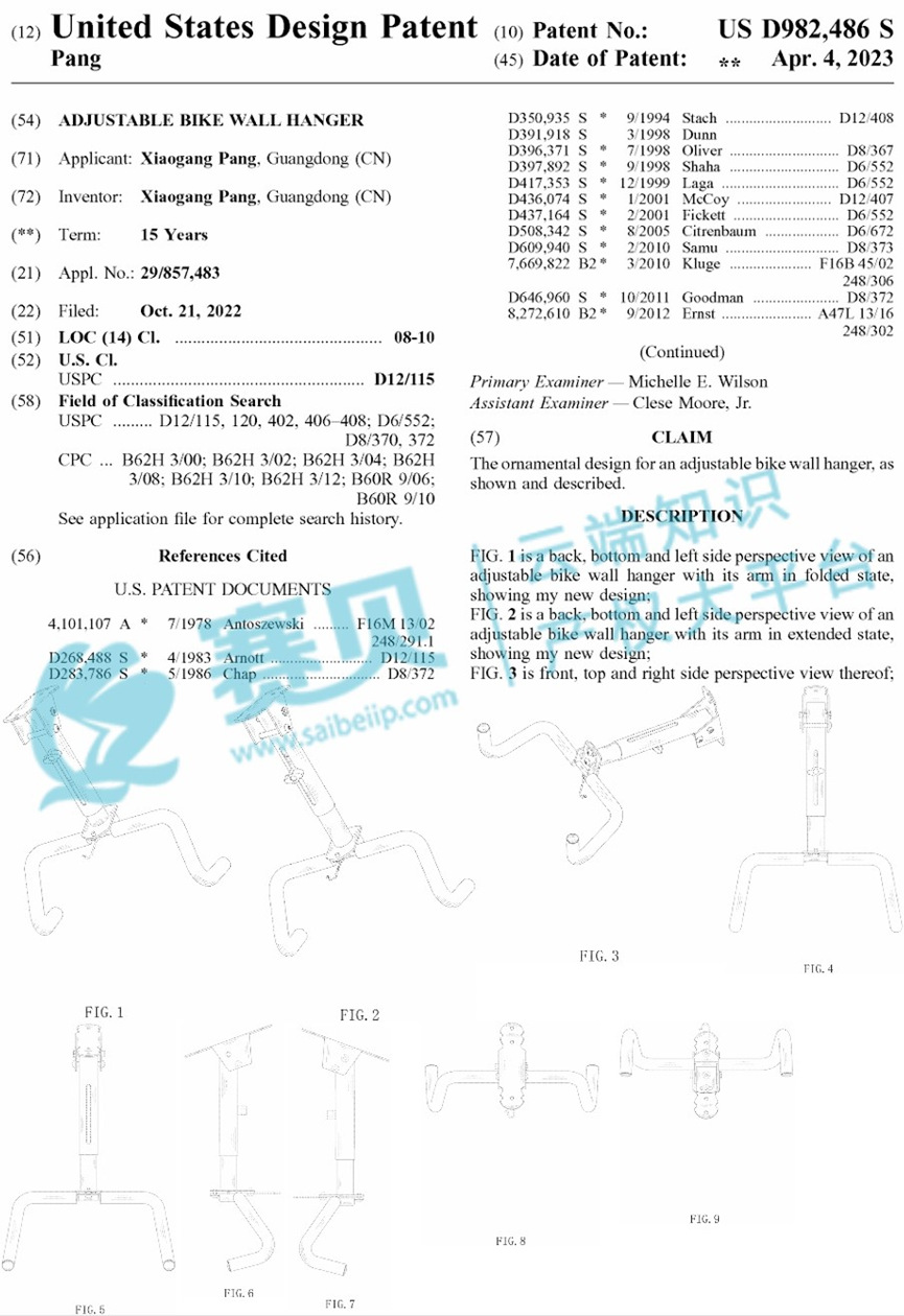 本案涉及一项美国外观设计专利USD982486S,最早申请日期是2022年10月21日,下证日期是2023年4月4日,在此之后上架的相关外观产品或有侵权风险。