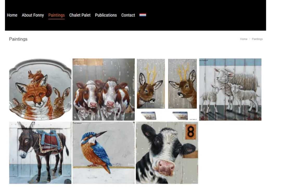 原告Fonny van der Veen是一位来自荷兰的艺术家,她的创作风格基于对自然与传统手工艺的双重热爱。早年接受艺术教育,后经过多年探索,在旧木板上找到了独属于她的艺术风格。一次偶然发现的破损栅栏木料,让她开始以丙烯为媒介,将木材天然的纹理与动物形象巧妙融合。为了达到最佳的和谐感,她尝试将粗犷的质感和细节,例如钉孔、节疤和旧漆,与画中的动物融为一体。目前,Fonny van der Veen经营着一处私密舒适的度假小屋Chalet Palet,布置精美,氛围私密,是热爱艺术的人士的理想之选。