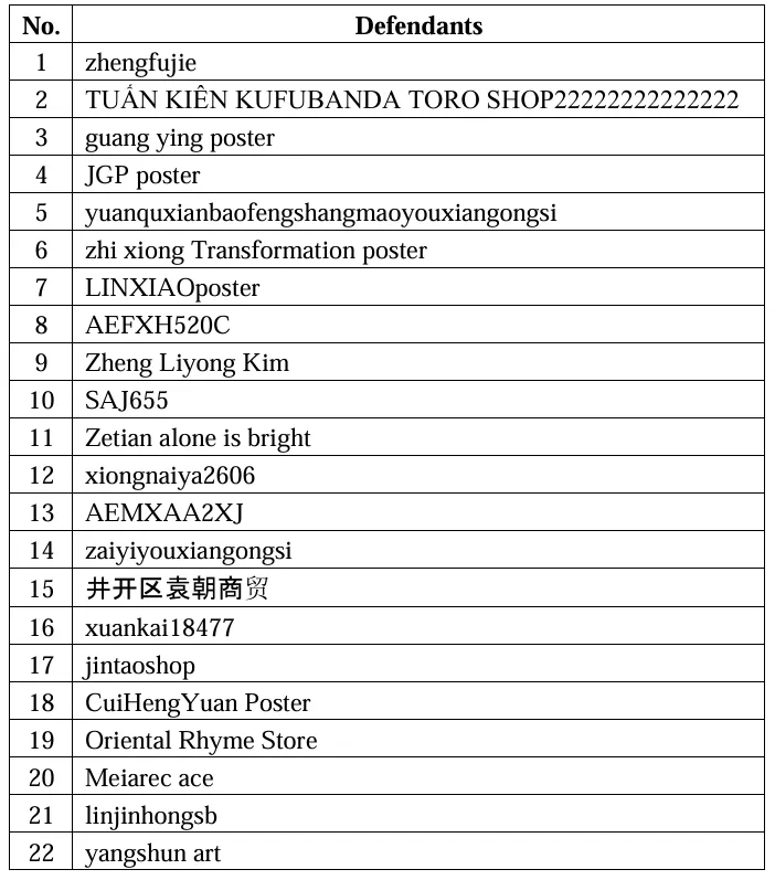 Keith代理美国艺术家对3张版权图发起TRO诉讼,被告网店有31家