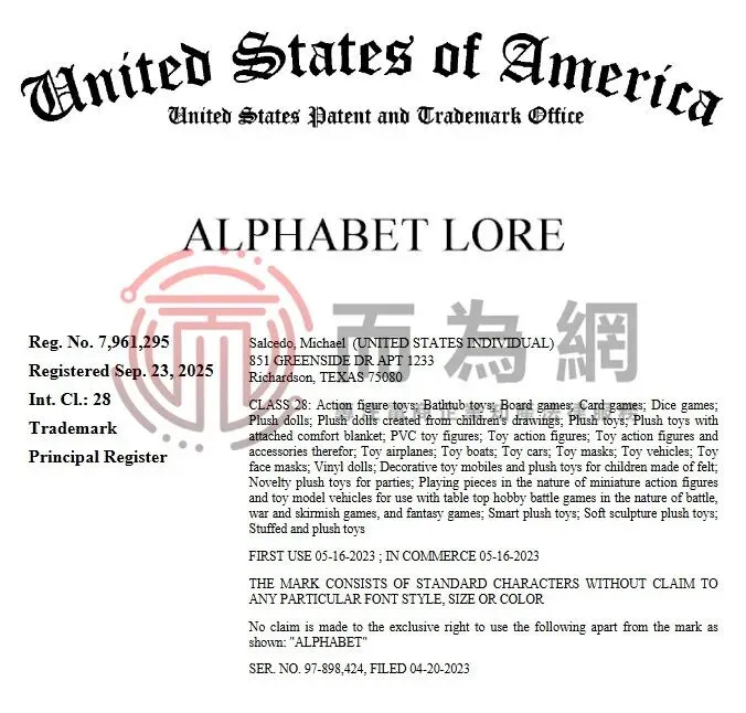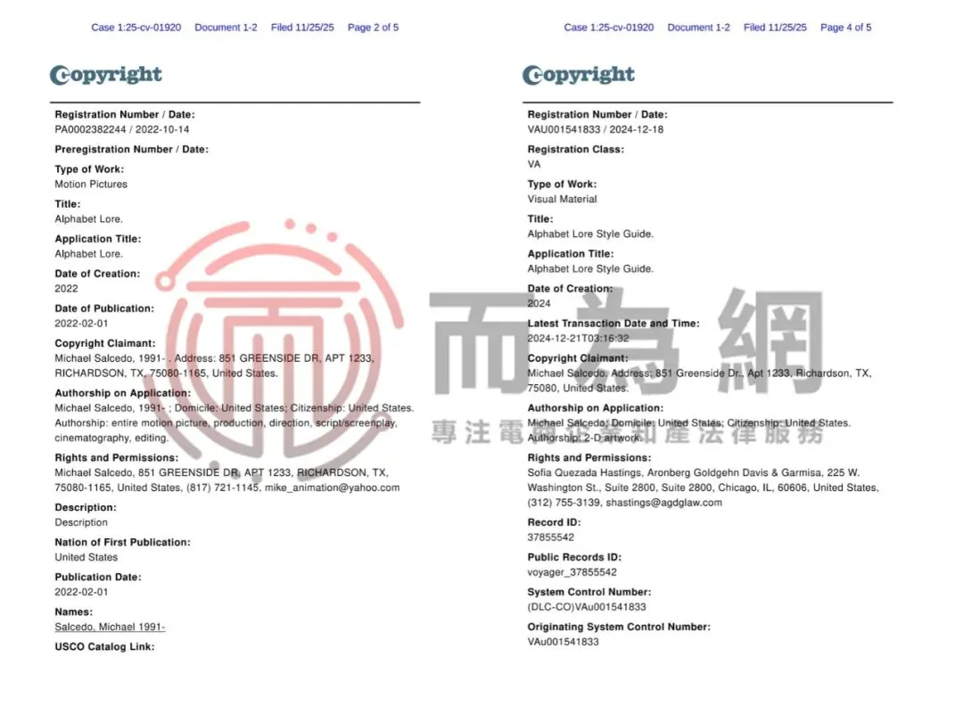 【侵权快讯】25-cv-1920 AGDG律所代理Alphabet Lore 字母传说商标+版权在德州发案!相关周边产品立刻下架