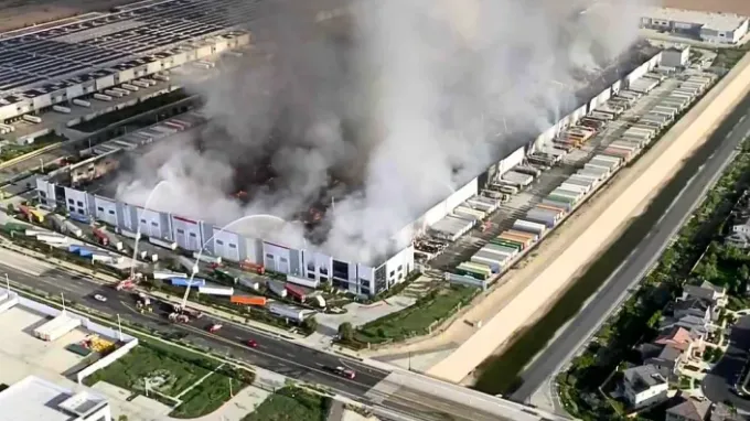 美国加州仓储中心遭纵火焚毁!120万平方英尺陷入火海
