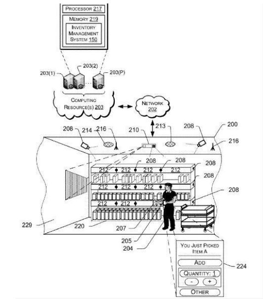 购物者不必将不需要的物品退回商店即可获得退款。根据Amazon Go专利显示,它是这样做的:首先,采集用户的手进入货架平面前的图像。然后,采集用户的手离开货架平面后的图像。最后,两者对比,可以知道是拿出货物还是放入货物。