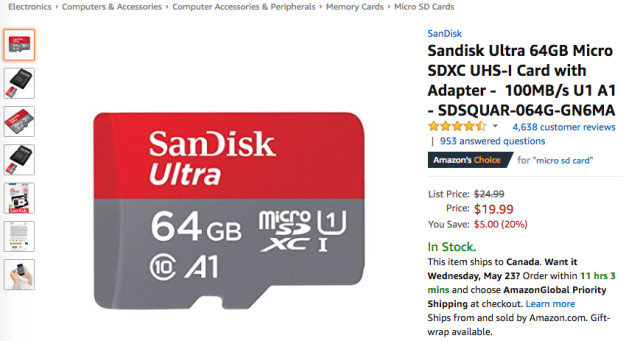 而除了上周位居商品综合排名第二的SanDisk 64GB内存卡,