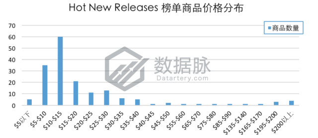 上周Cell Phones & Accessories品类Hot New Releases榜单商品最高价$799.99,最低价$2.51,平均价格$33.67。在上周的Hot New Releases榜单中,有较多上榜商品选择定价在$10.00-$15.00价格段,占该周进榜商品总数的30.93%;同时,在上榜的商品中有18.04%的商品位于$5.00-$10.00价格段;此外骆探长(shujumai.com)发现,在高价格段,上周有4款上榜商品的价格超过了$200.00,占上榜商品总数的2.06%。相较于上期分析,该周进榜商品的总体平均价格同样出现了明显的上升,高价商品在Hot New Releases榜单中的竞争力亦有所增强。