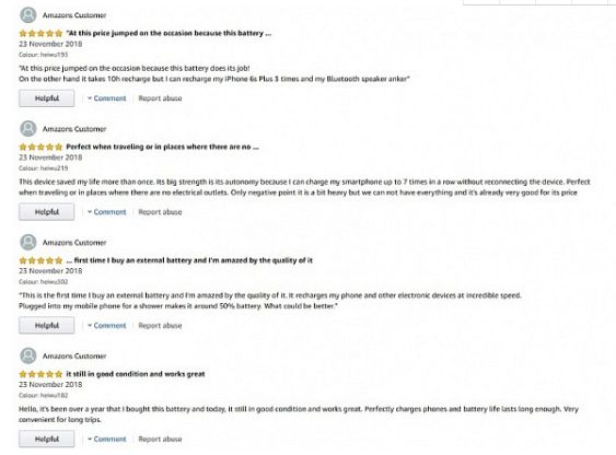 1月初亚马逊网站上仍然存在大约700多条高度可疑的充电器评论,并且已经存在了将近一个月。后来这700多条评论被删除,但该产品其他经过验证的评论仍然存在。