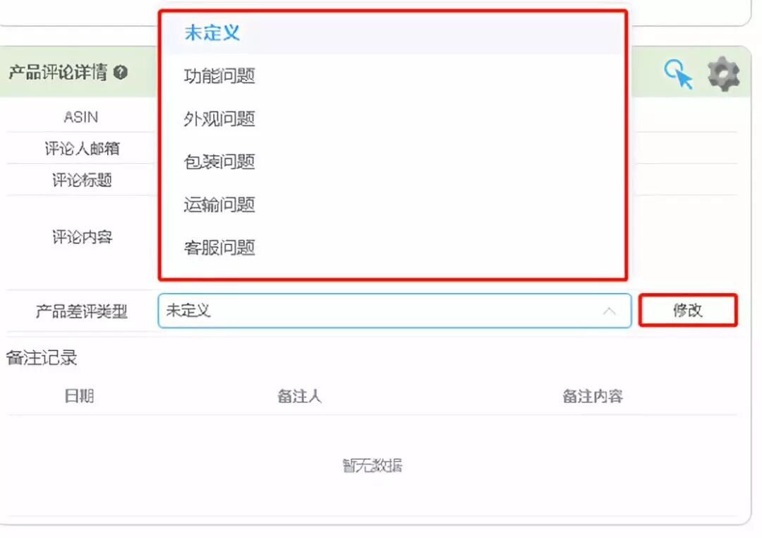 点击产品差评类型,选择相应的类型,点击修改,进行产品差评类型的修改操作。