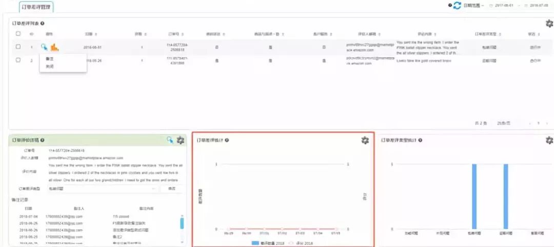 订单差评管理是将所有的订单差评集中在一个界面进行统一管理,可以进行备注,还可以进行分类操作,能让用户第一时间发现差评,及时与客人沟通以移除差评,通过差评类型统计可以优化产品,提高销量。
