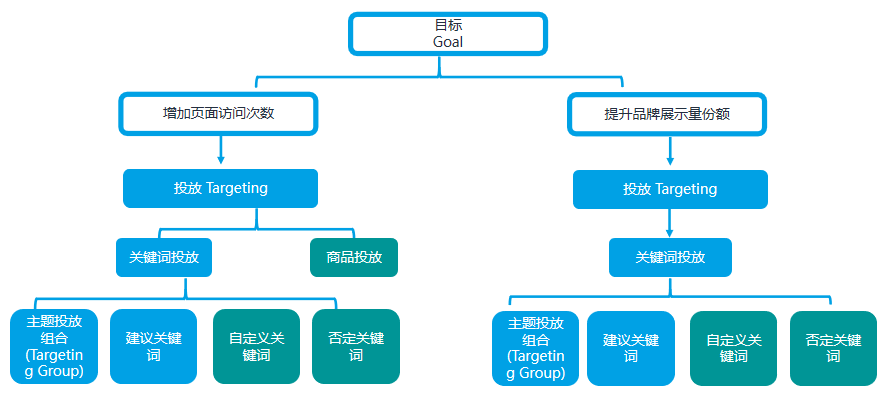 核心:基于您设定的“目标”(增加页面访问次数或提升品牌展示量份额),为您推荐相应的关键词、竞价和创意格式,促使广告高效达成目标。