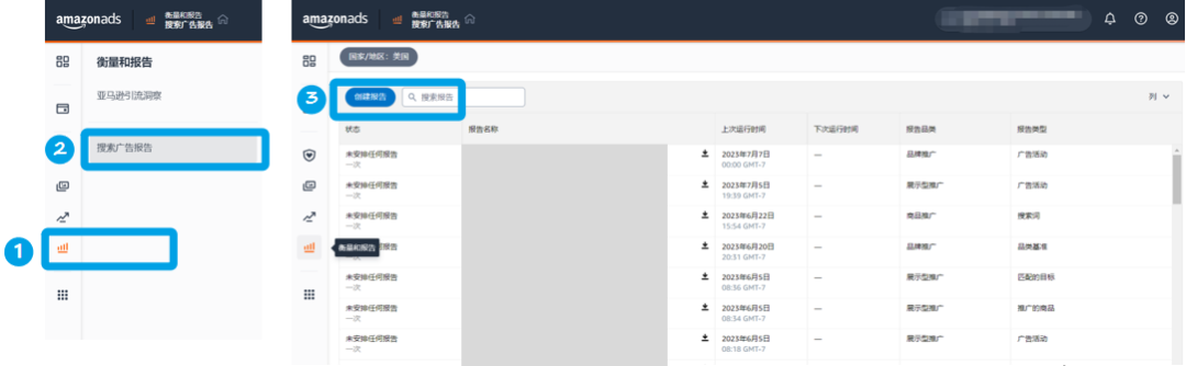 路径1:下载广告报告:广告平台左侧菜单栏→衡量和报告→搜索广告报告→创建报告→配置