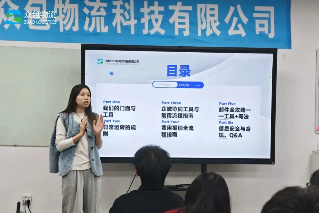 上午,电商事业部总监带来《国际物流行业知识/行业发展历程》的专业分享,从行业起源到发展趋势,从核心知识到行业痛点,层层拆解、细致讲解,帮助实习生们快速搭建起国际物流行业的认知框架,为后续的工作开展打下坚实的专业基础。
