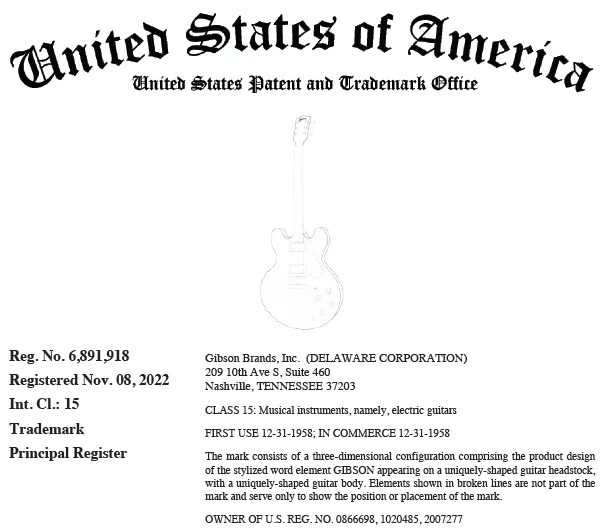 原告Gibson, Inc 吉普森吉他公司是美国乃至全球最负盛名的乐器制造商之一,其历史可以追溯到19世纪末。从最初的曼陀林和吉他设计,到引领电吉他革命,再到成为摇滚、蓝调、爵士等音乐风格的标志性品牌。