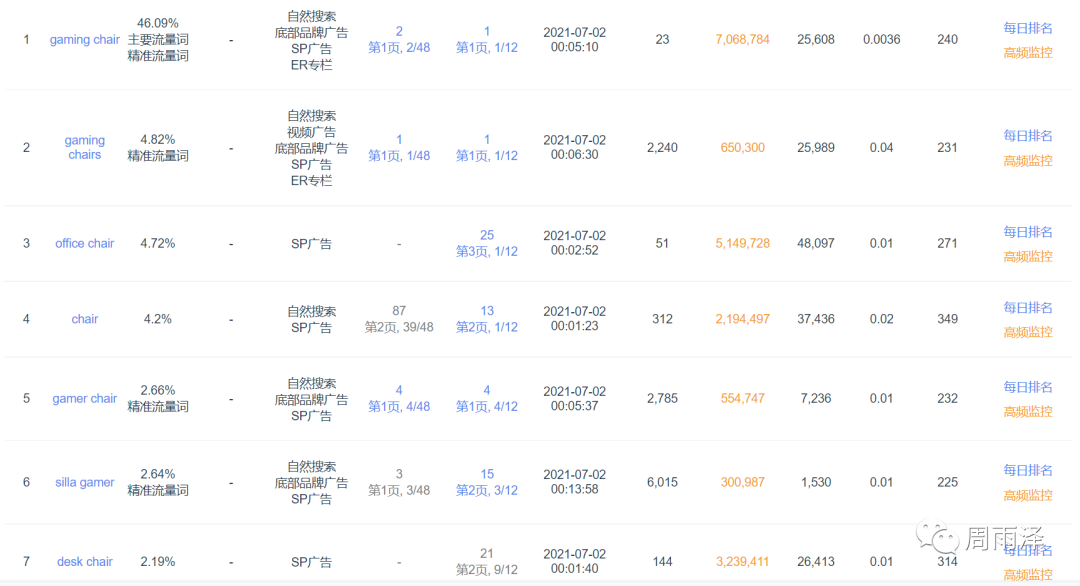 如果核心关键词的点击比较集中,前三名的ASIN点击率和转化率都很高,那证明这个关键词有垄断的趋势,在产品不占优势的情况下,不要猛攻