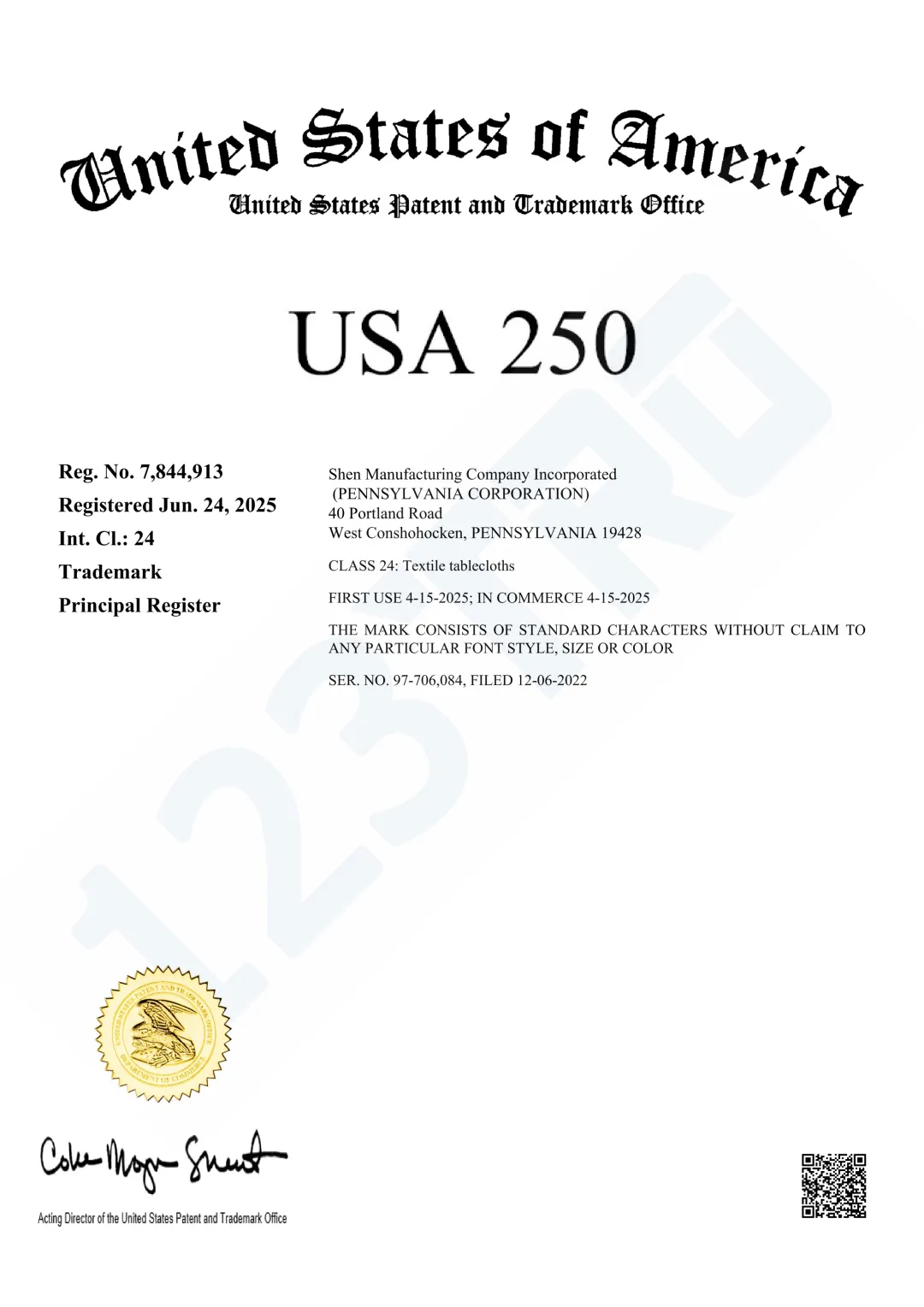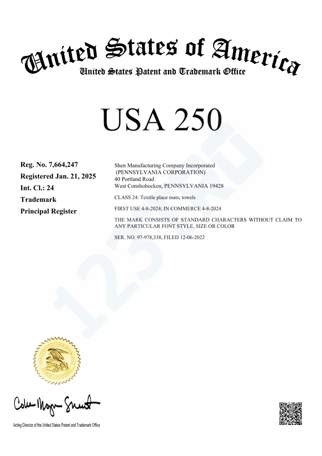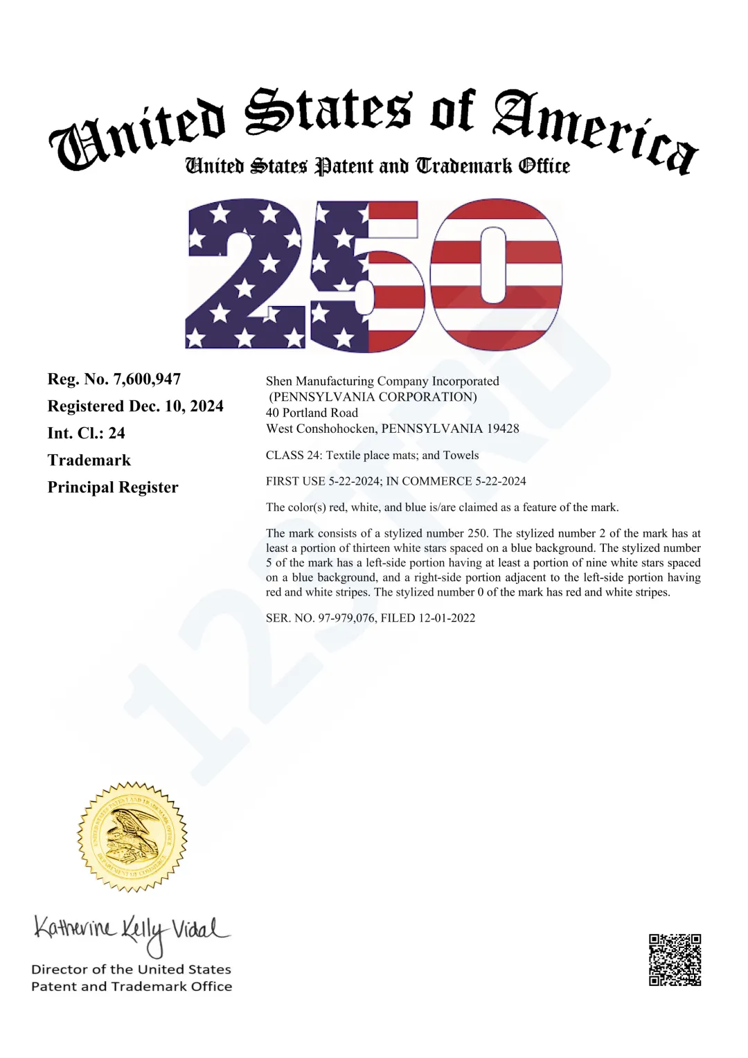 商标号:Reg. No. 7,600,947