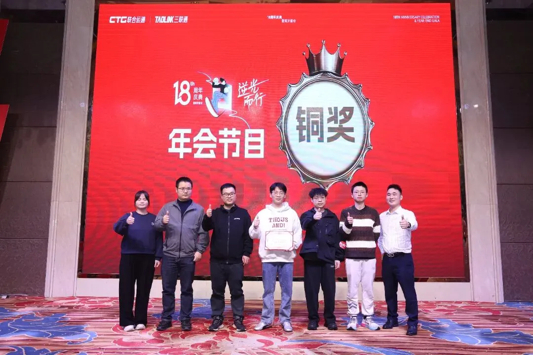 晚会现场,CTG联合运通与taolink三联通的各大业务板块、分公司、运营及职能团队依次登台,展现了品牌部、小包、空派、海运、超大件、空运、墨西哥及日本线等全链路服务的专业风采。这一刻,舞台不仅是星光的展示,更是实力的宣言。从业务一线到职能后台,全体CTG人展现了血脉相连、无惧逆光的团队凝聚力,共同喊出了对客户的郑重承诺。
