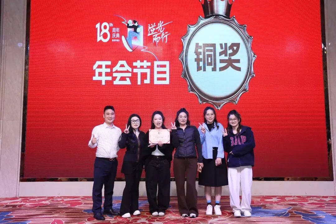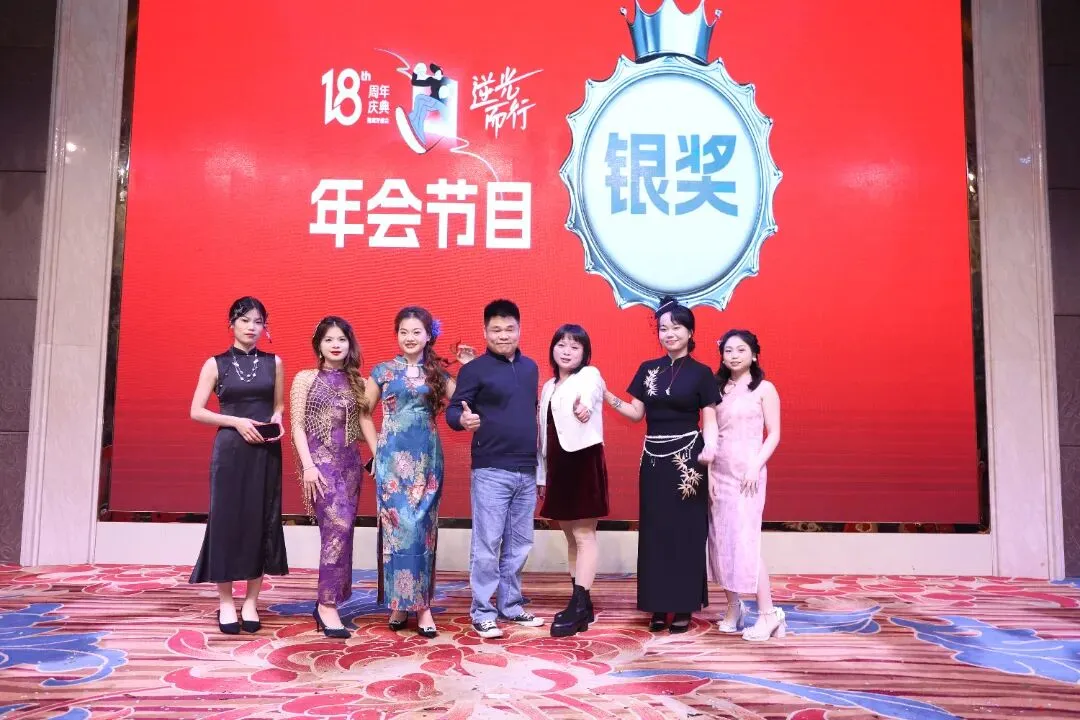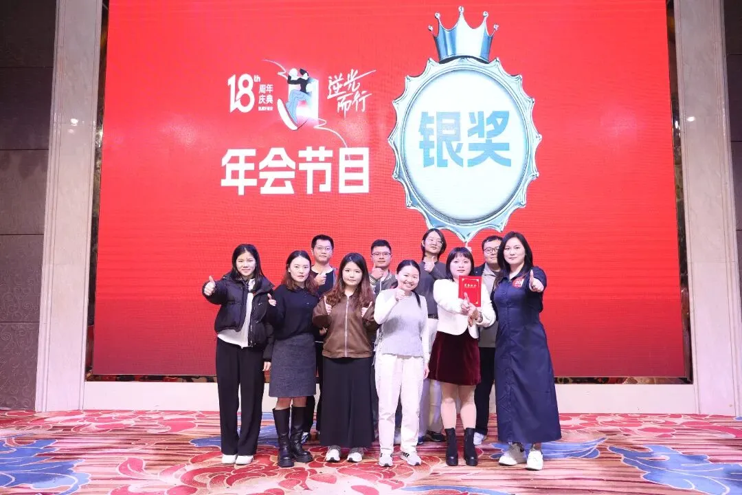 当晚的文艺表演环节亮点纷呈,15个由员工自编自演的节目,将物流人的坚韧与才华展现得淋漓尽致: 财务部以劲舞《我最红》点燃全场,象征着公司业绩红红火火。海运部情景剧《后来》动情演绎了货代人的成长轨迹,引发全场共鸣。广州分公司的《Toooo Busy》与单证部的《向快乐出发》,将忙碌的物流节奏转化为动感的舞步。小演奏家钟子妍的古筝独奏《萱草花》与海运部郭雪玲的歌曲《如愿》,诉说了跨越十八载的深情告白。