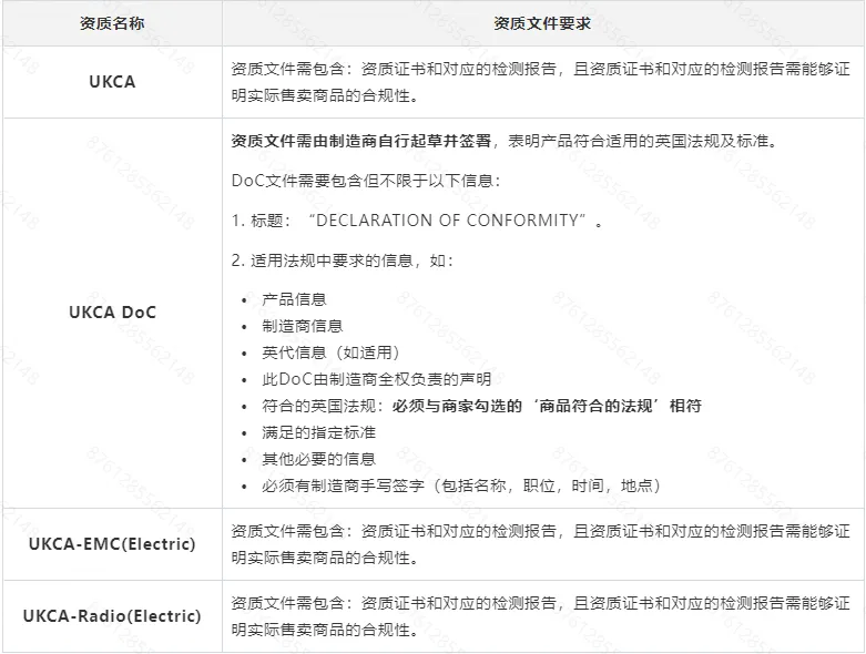 商家需根据商品的实际情况提交相应的资质文件。以下列出的部分文件要求仅为示例,并非售往英国大不列颠地区商品所需的全部资质文件要求,请务必关注卖家课堂的更新,以获取完整且最新的合规指引。