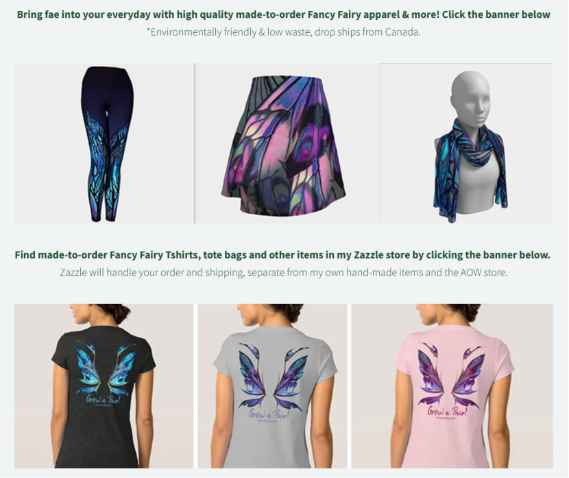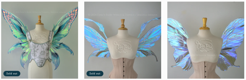 原告Angela Jarman是一位居住在美国加利福尼亚州的艺术家,其通过对精灵形象的构想,创作出了以精灵翅膀为主题的版权图案,并且从2003年开始销售彩虹精灵翅膀相关产品。其展销作品官网为:https://www.fancyfairy.com/。以下为官网截图: