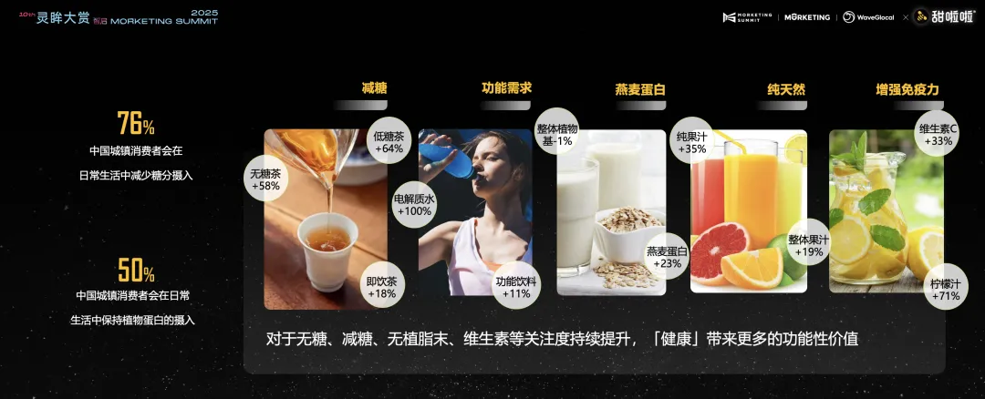 从消费数据来看,76%以上的人群正在有意识地减少糖分摄入,超过50%的人开始增加蛋白质摄入,比如多喝牛奶、多吃鸡蛋。这些变化,正在直接影响茶饮的产品逻辑。