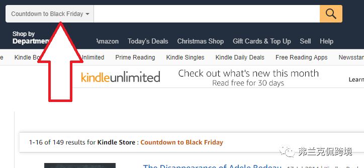 我们通过前台页面,也可以发现亚马逊正在紧锣密鼓地为黑五造势了。亚马逊已经为这个节日新增了一个子类目的搜索框: