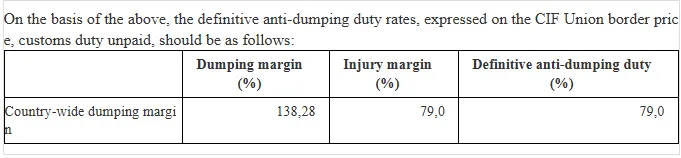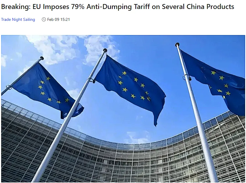 欧盟宣布:对这些中国商品加征高达79%反倾销税
