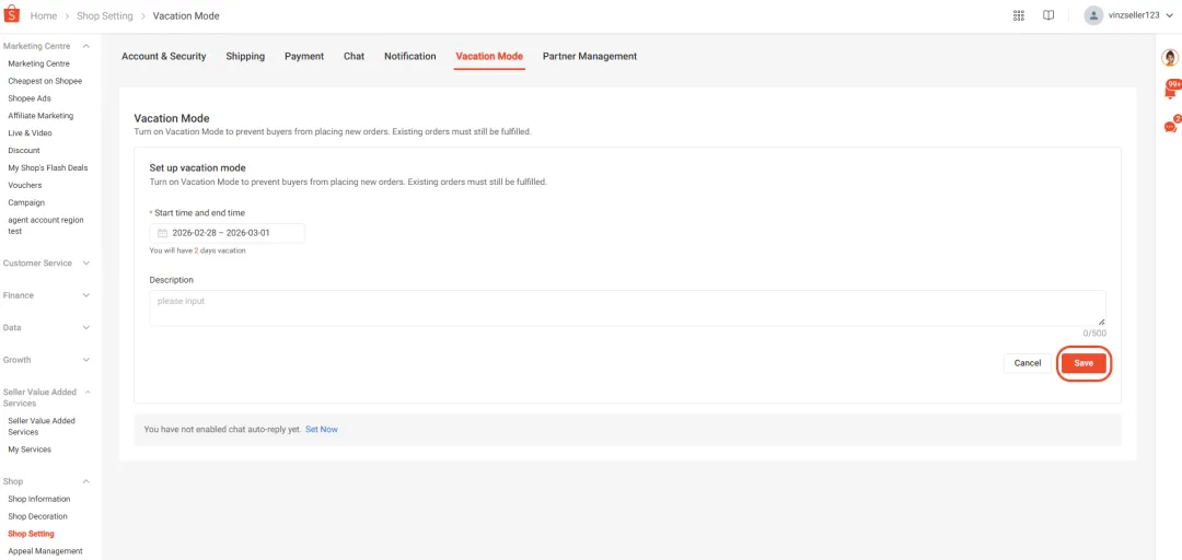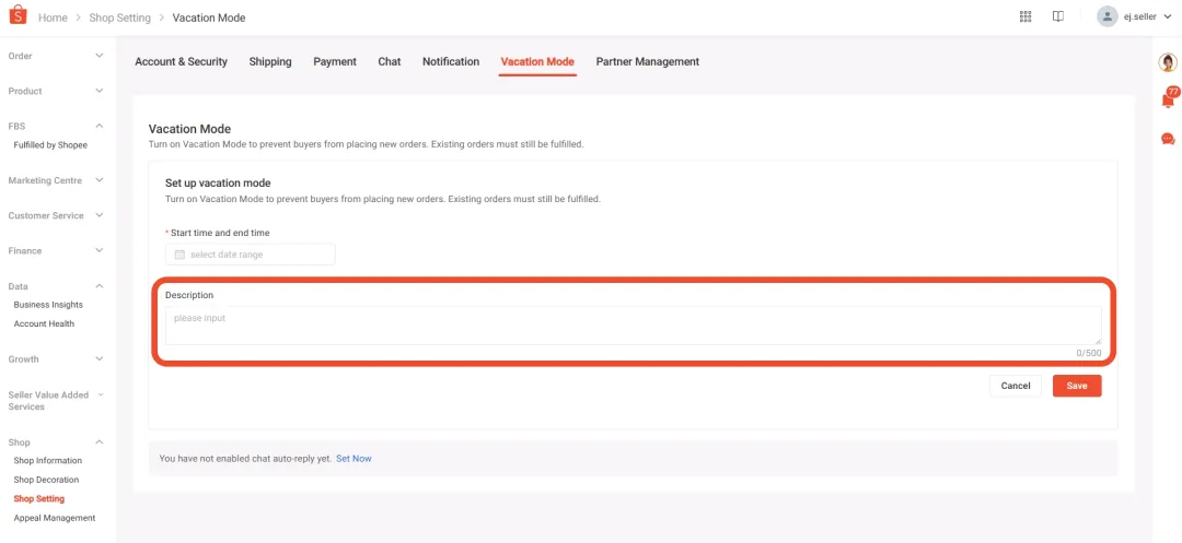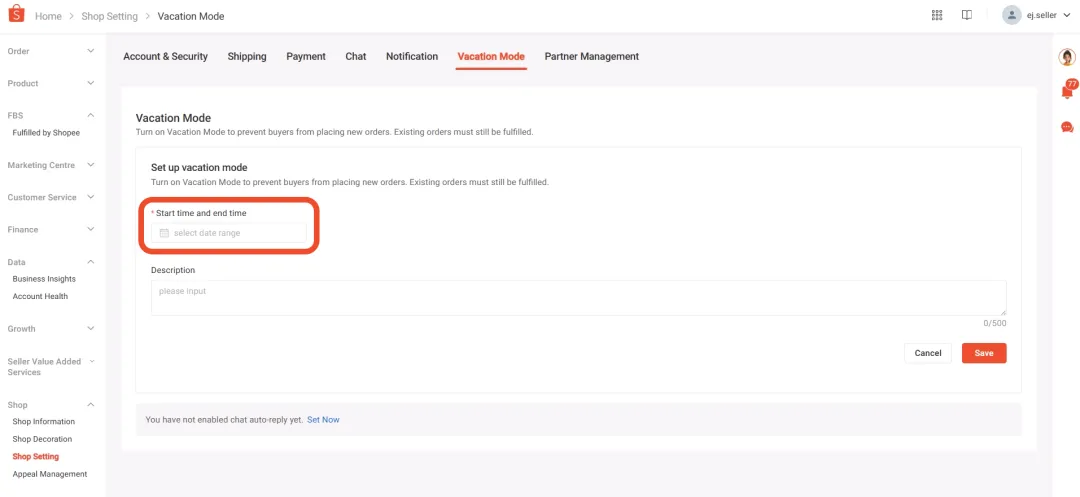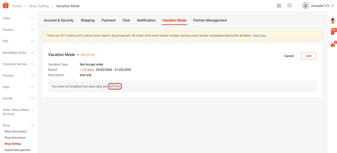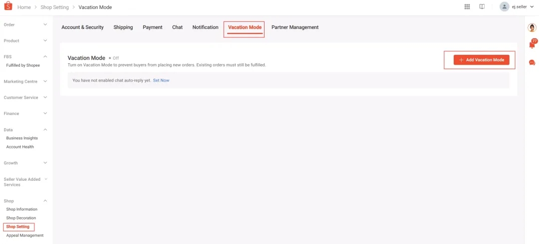 启用假期模式时,请确保通过满足现有发货截止日期来避免延迟发货,并使用自动回复来管理客户期望。