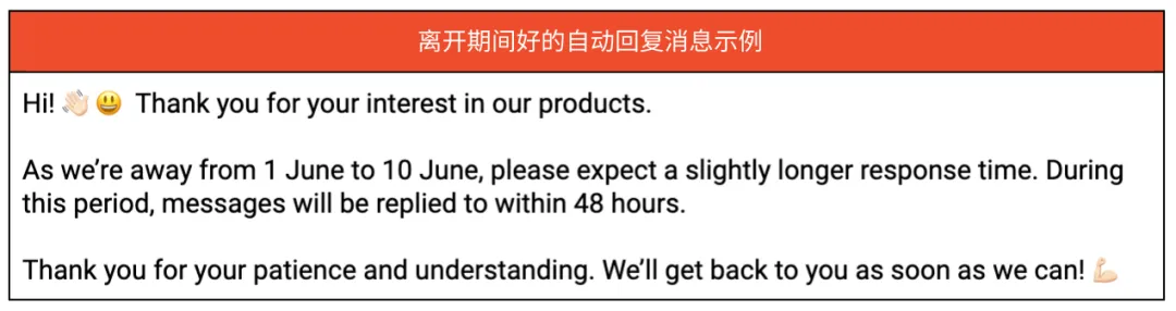 一个好的自动回复消息应包含一些关键细节,以设定客户的期望: