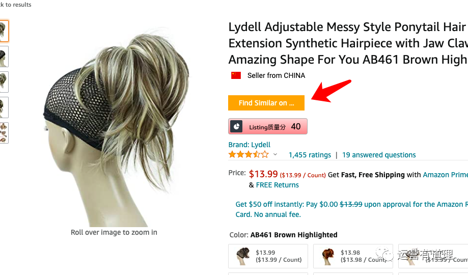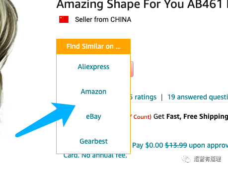 我们把目光聚焦到页面中的 Find similar on 这个功能(支持在亚马逊、速卖通和eBay 3个平台使用)