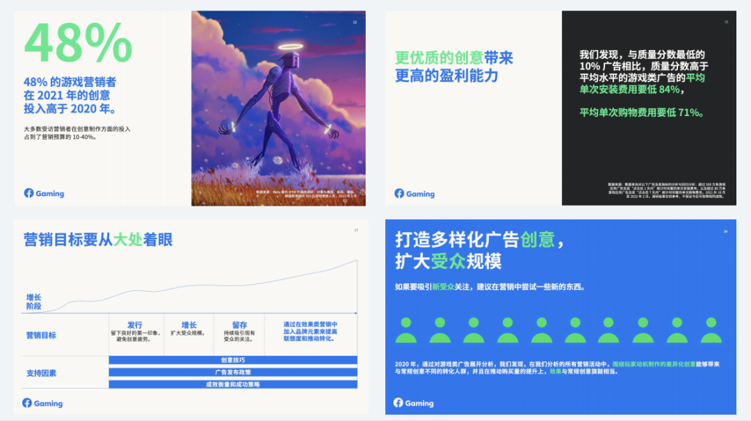 此游戏创意包表明了:创意是由广告主掌握的广告成效工具,可以提高广告相关性、独特性、知名度和效能,进而帮助游戏客户在全渠道中提高营销活动绩效。包含: