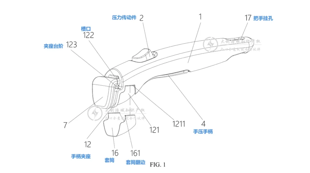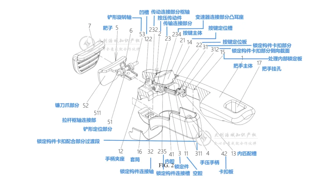 安装在手柄空腔内,可与手柄本体实现锁合。 一端与按压传动件的下端可转动连接,随按压动作联动。