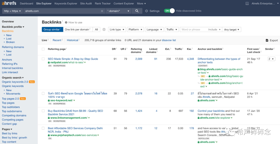 你可以使用 Ahrefs Webmaster Tools(Ahrefs站长)中免费的 Site Explorer(网站分析)去查看网站的外链。