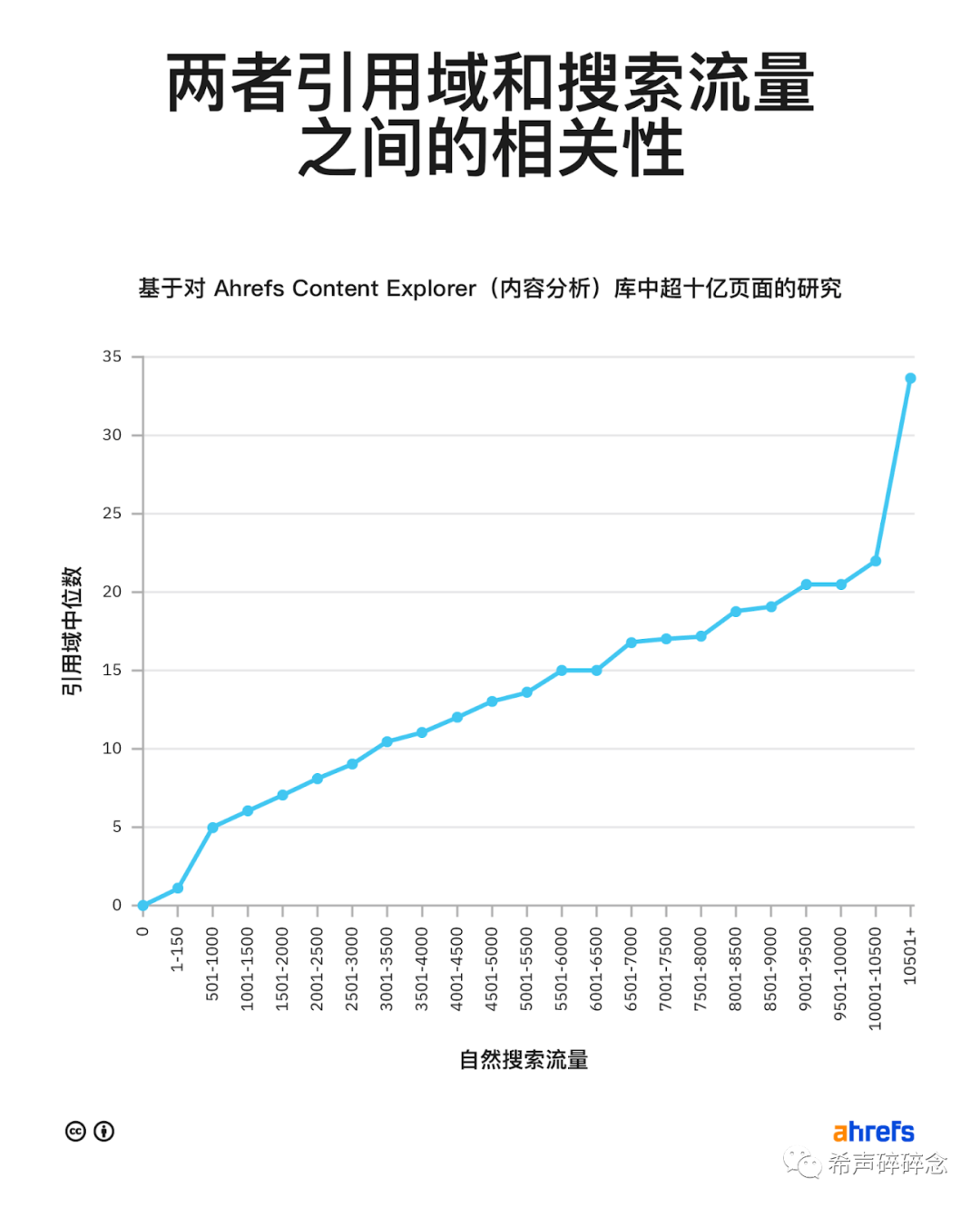 我们分析了超过10亿个页面,并发现链接到该页面的网站数量与它从 Google 获得的自然流量之间有着明显的相关性。