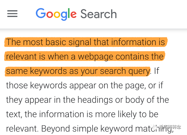 Google 在讨论搜索是如何工作的时候,就说到了相关性对页面影响。
