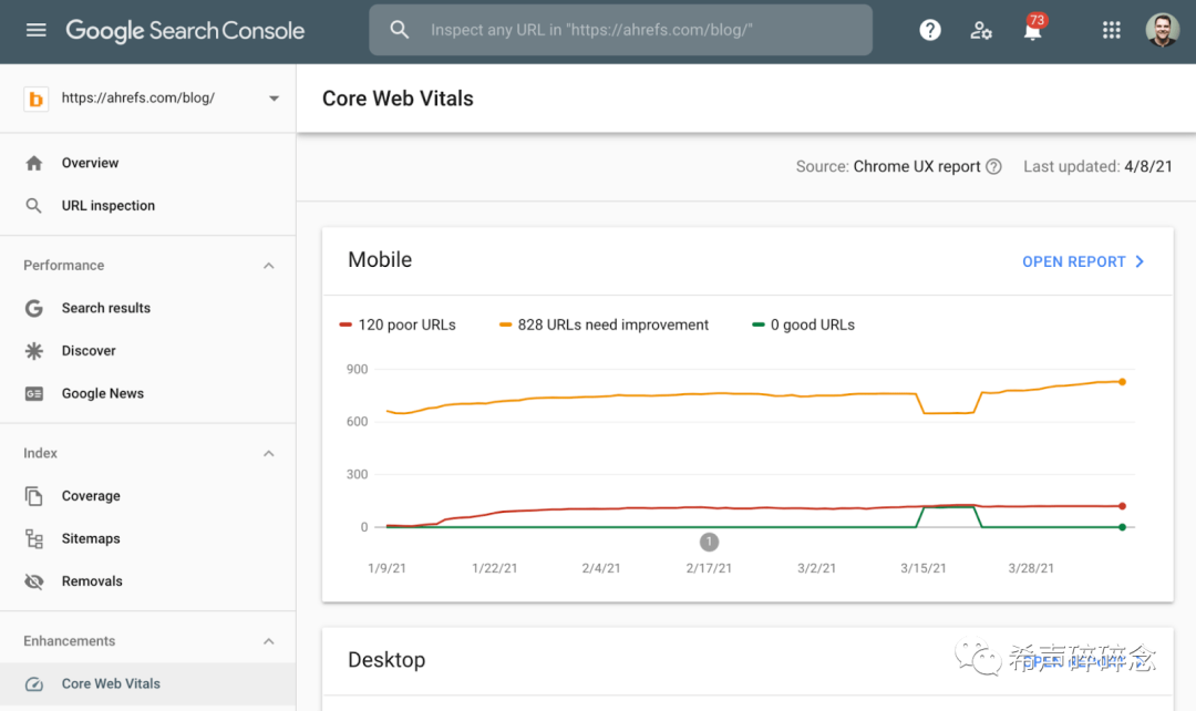 你可以使用 Google Search Console 中的核心页面指标报告查看网站上所有页面的效果。